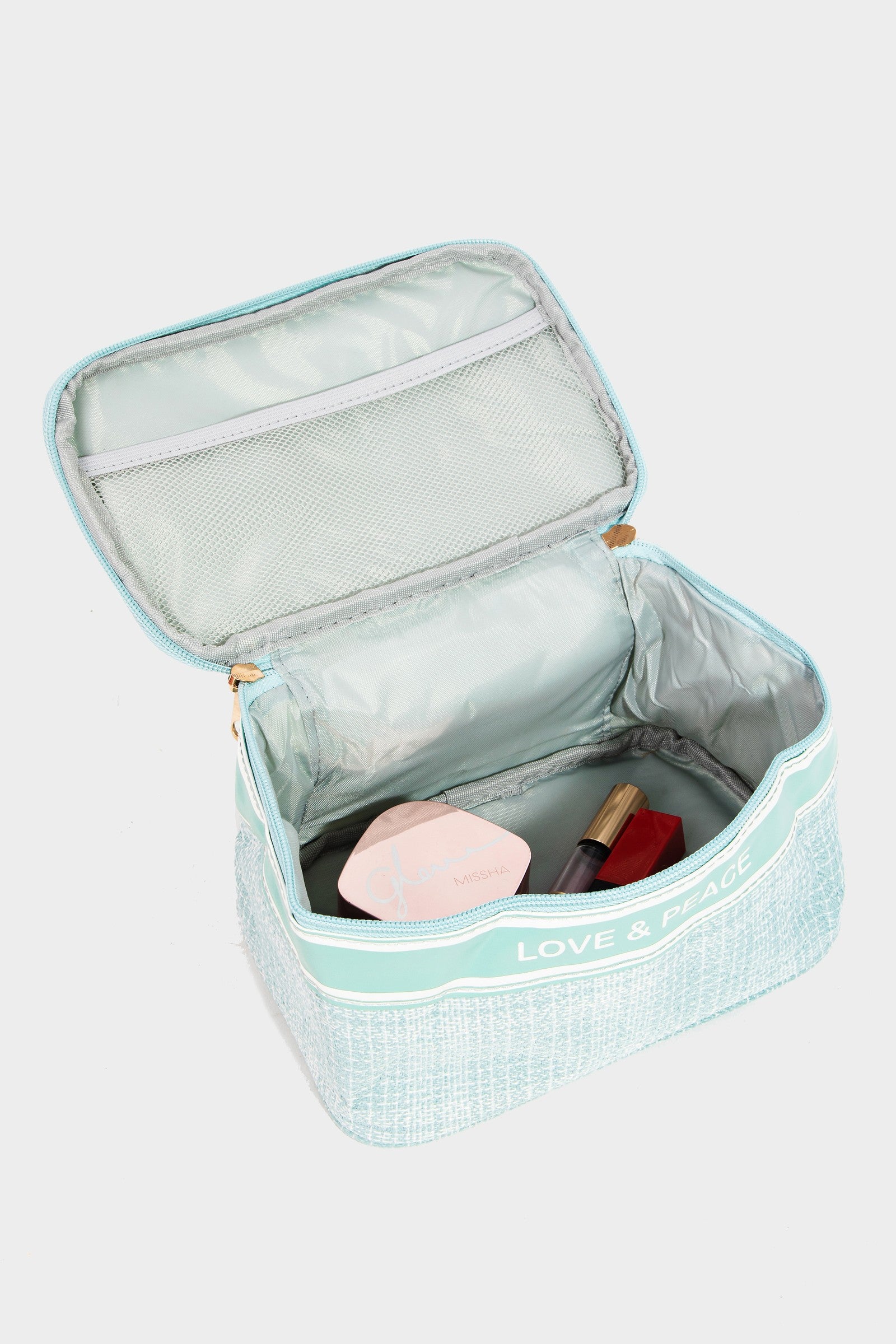 This hand bag showcases a timeless love and peace striped handle bag style. Explore a refined sense of style with this accessory, seamlessly elevating the chic factor of your look.