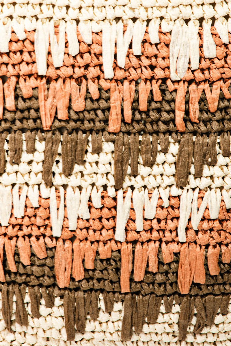 - This tote bag features a braided straw construction that exudes a beachy and bohemian vibe.The addition of colorful stripes adds a playful and vibrant touch to the overall look.