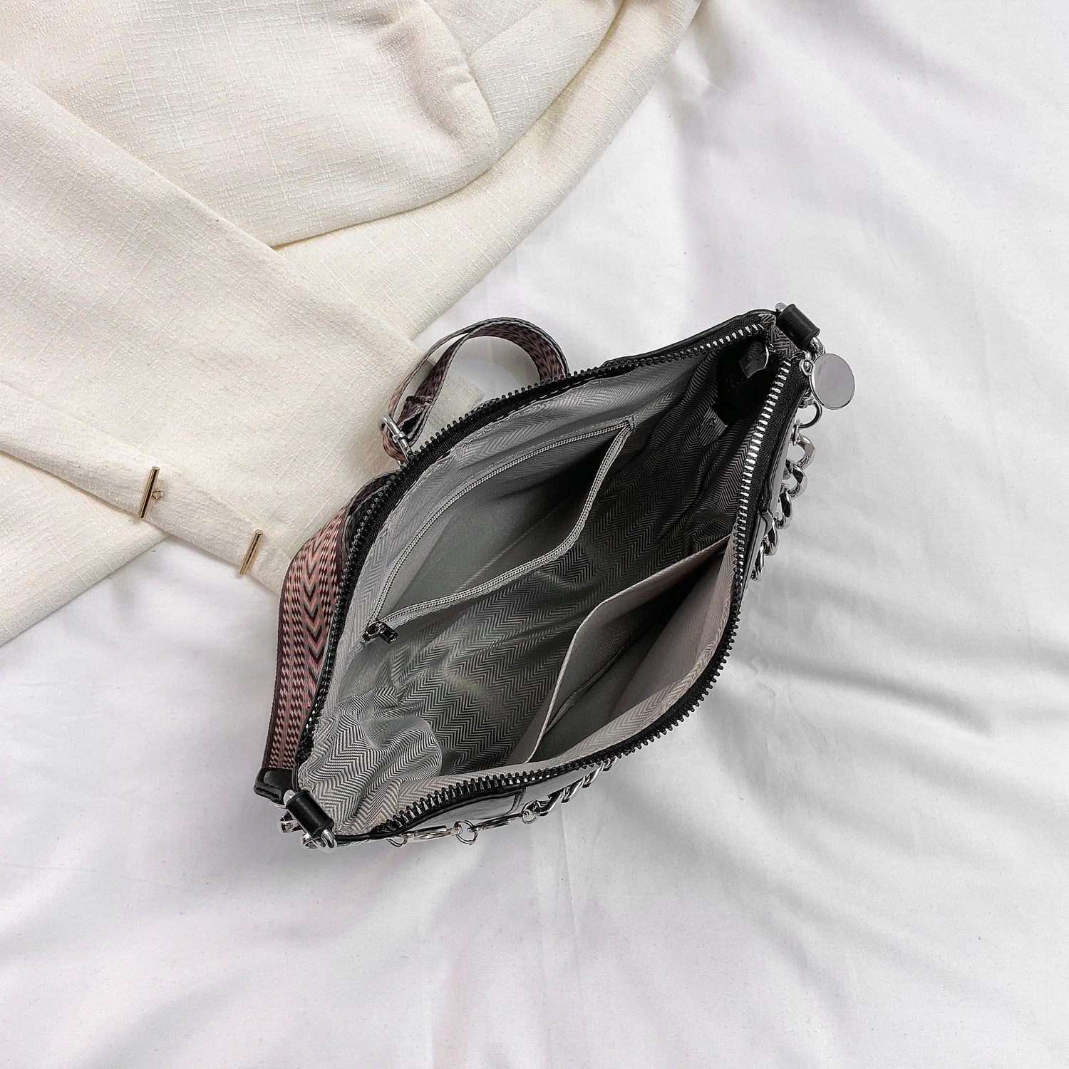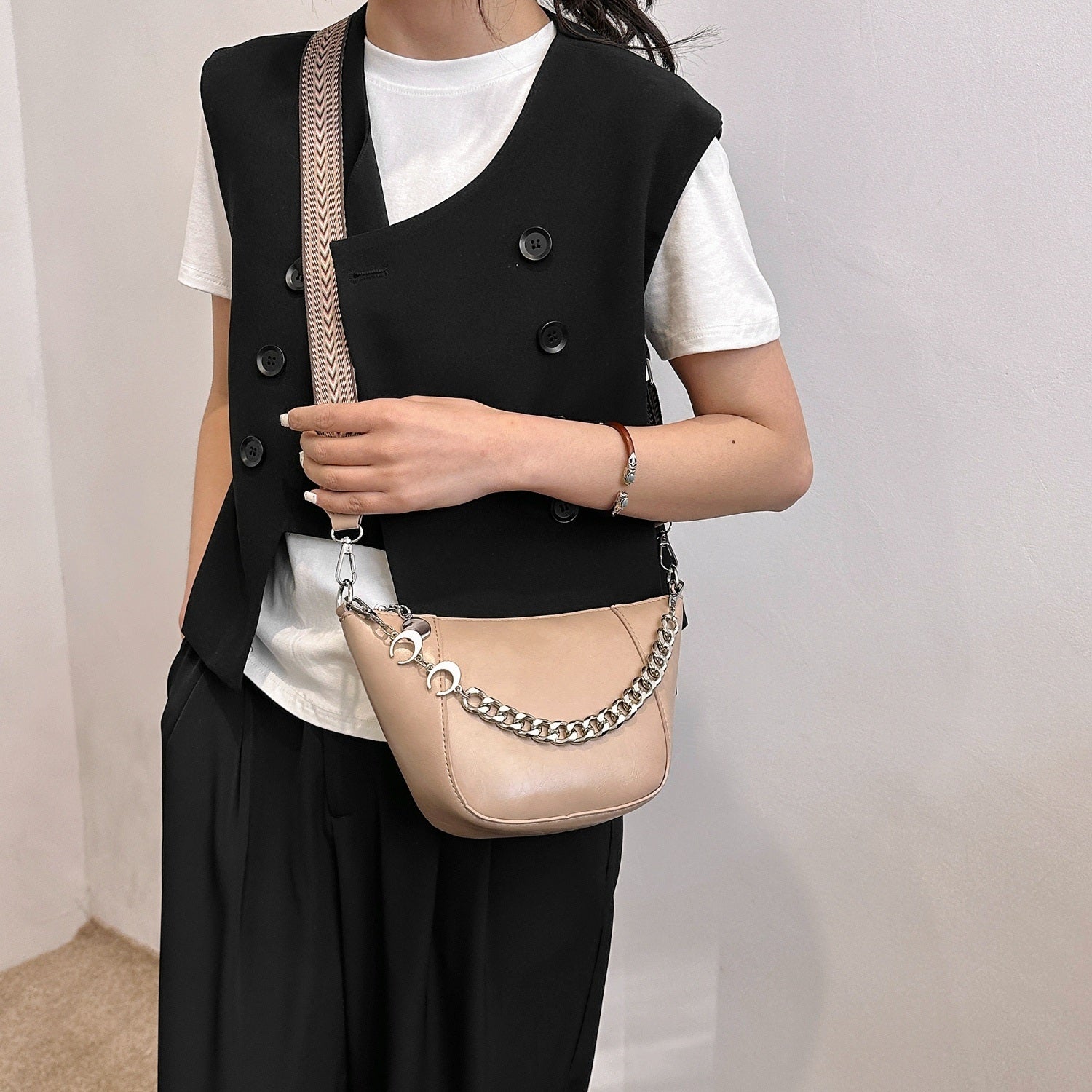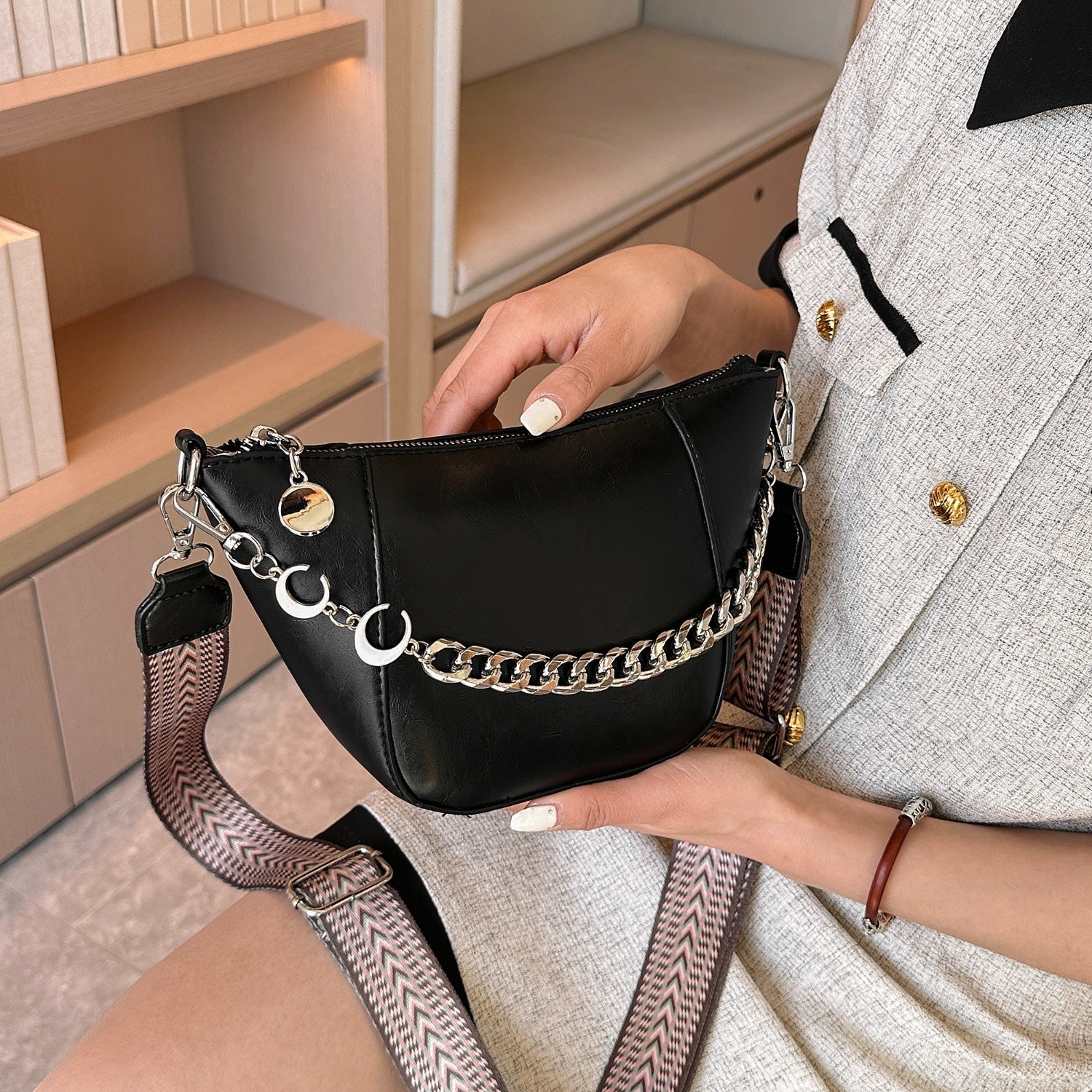 - Special Occasions:The elegant chain trim elevates its look, making it suitable for dressier events.