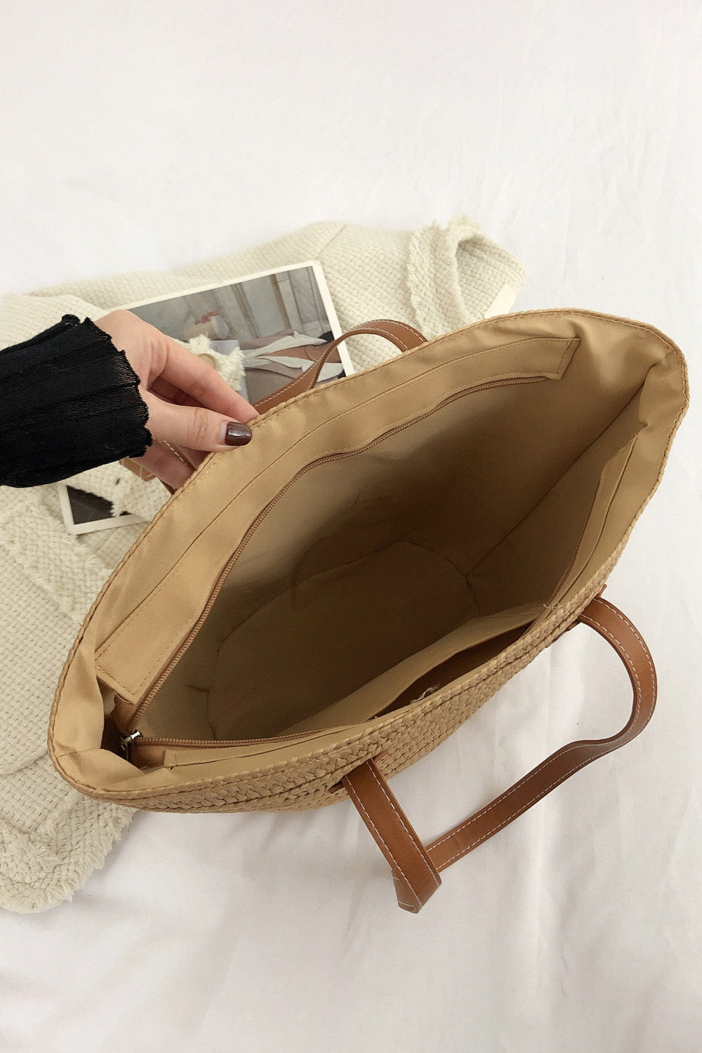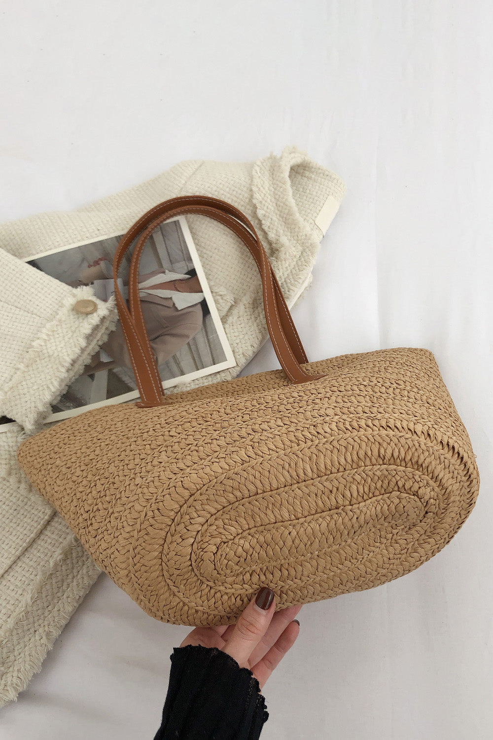 Vegan Leather Handle Straw Tote Bag -Effortlessly combine sustainability and style!