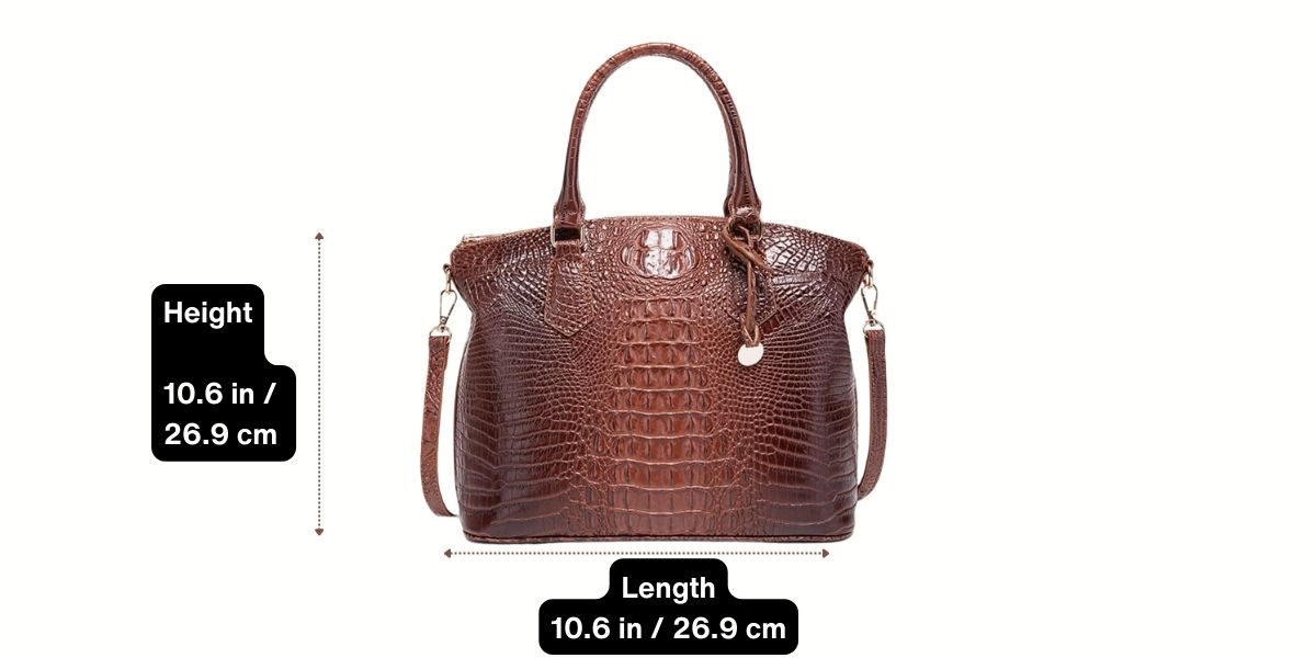 - This medium sized bag is perfect for work attire and features a stylish reptile skin look-alike design.